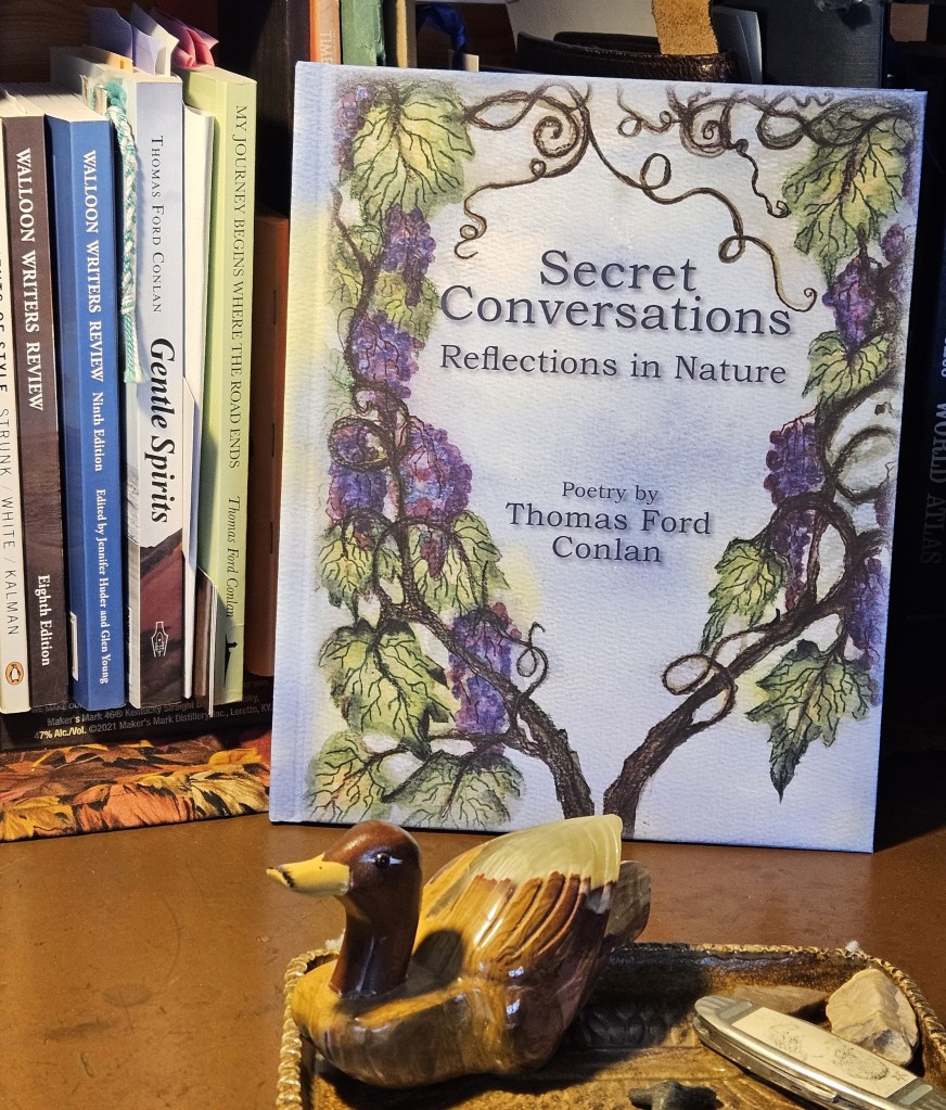 Secret Conversations—Reflections on Nature is an enchanting collection of poems, drawings and photographs that evoke the beauty, humor and lifelong observations of a poet who cleaves to wild spaces. Sentient author, Tom Conlan weaves lyrical verse throughout the lovely artwork of several artists including his wife Glenda Conlan. This is a compilation of artistic expression that celebrates nature by a man who worries for…” mother earth, for gentle beings”. This lovely collaboration is reminiscent of the writings of Wendell Berry, farmer and naturalist. Conlan’s poems are deeply elegiac and speak of the enduring strength of his connections to animals, plants and, of course, love: